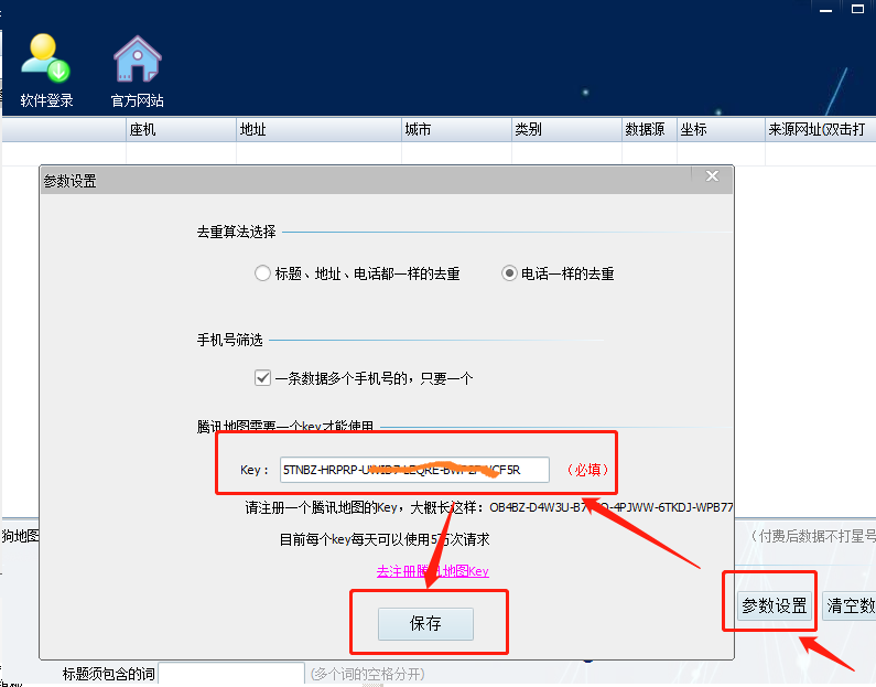 将以上得到的Key填入易地图数据采集大师方法如下: