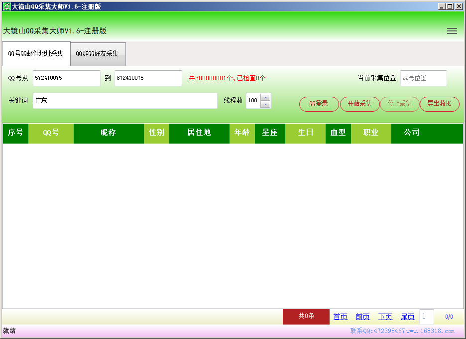 大镜山QQ采集大师是一款采集QQ号、QQ邮件地址,采集QQ群成员、QQ好友的软件。