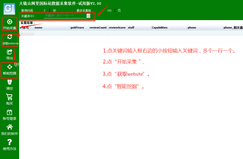 二、大镜山阿里巴巴国际站数据采集软件使用方法